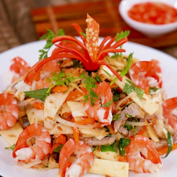GỎI CỦ HỦ DỪA TÔM THỊT + BÁNH PHỒNG TÔM