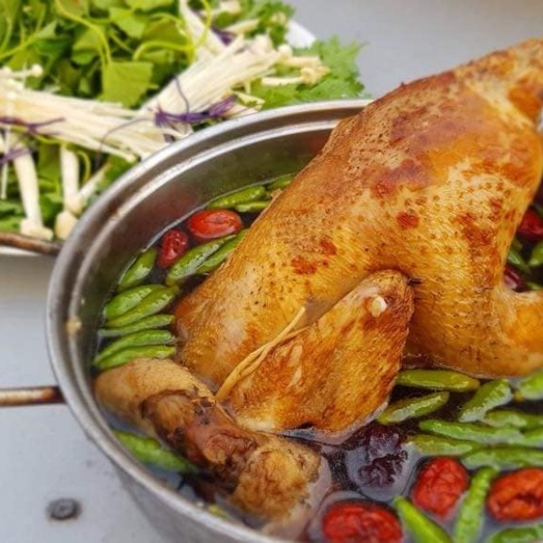 LẨU GÀ TIỀM ỚT HIỂM + MÌ TRỨNG